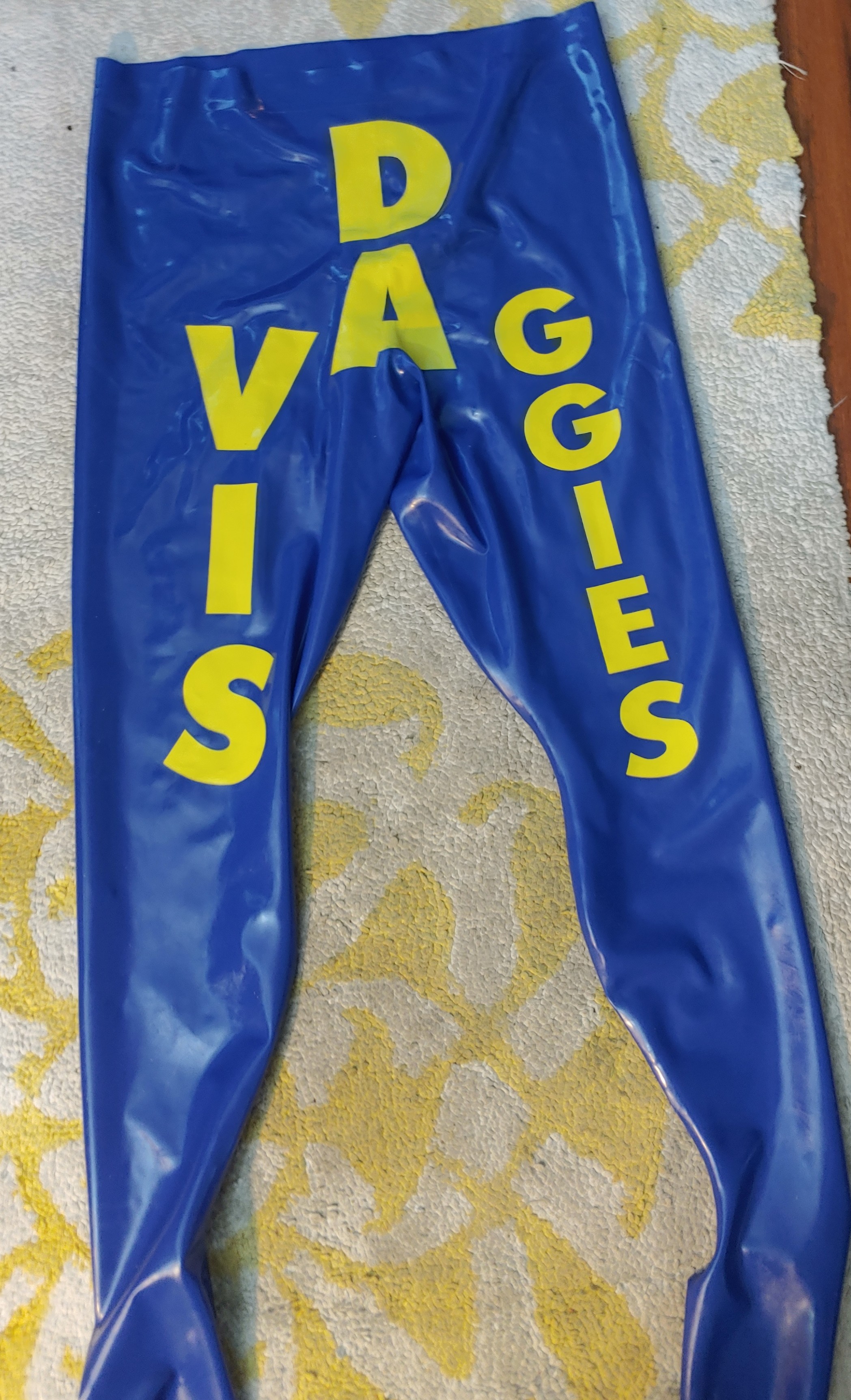 2. With UC letters on back and "Davis Aggies" on front. Please refer to attached photo.The letters on front smaller, UC letters on back a little bigger.